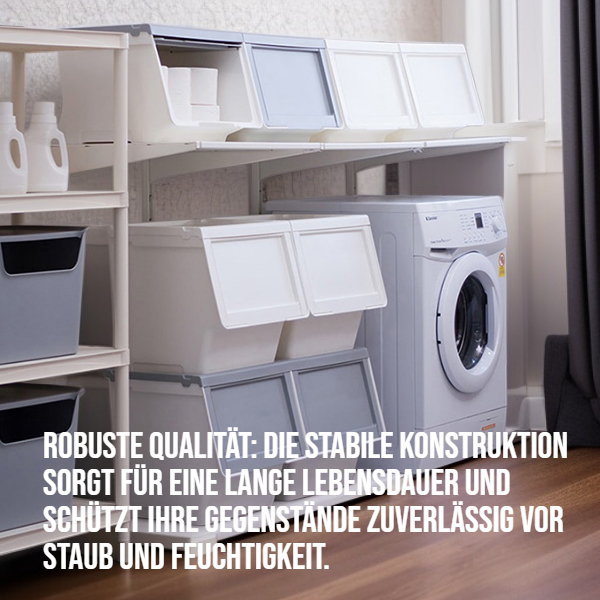 ● Einfach stapelbar: Durch das clevere Design können mehrere Boxen sicher übereinander gestapelt werden, um den Stauraum optimal zu nutzen.